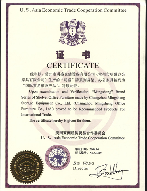 • 國際貿易推薦產品證書